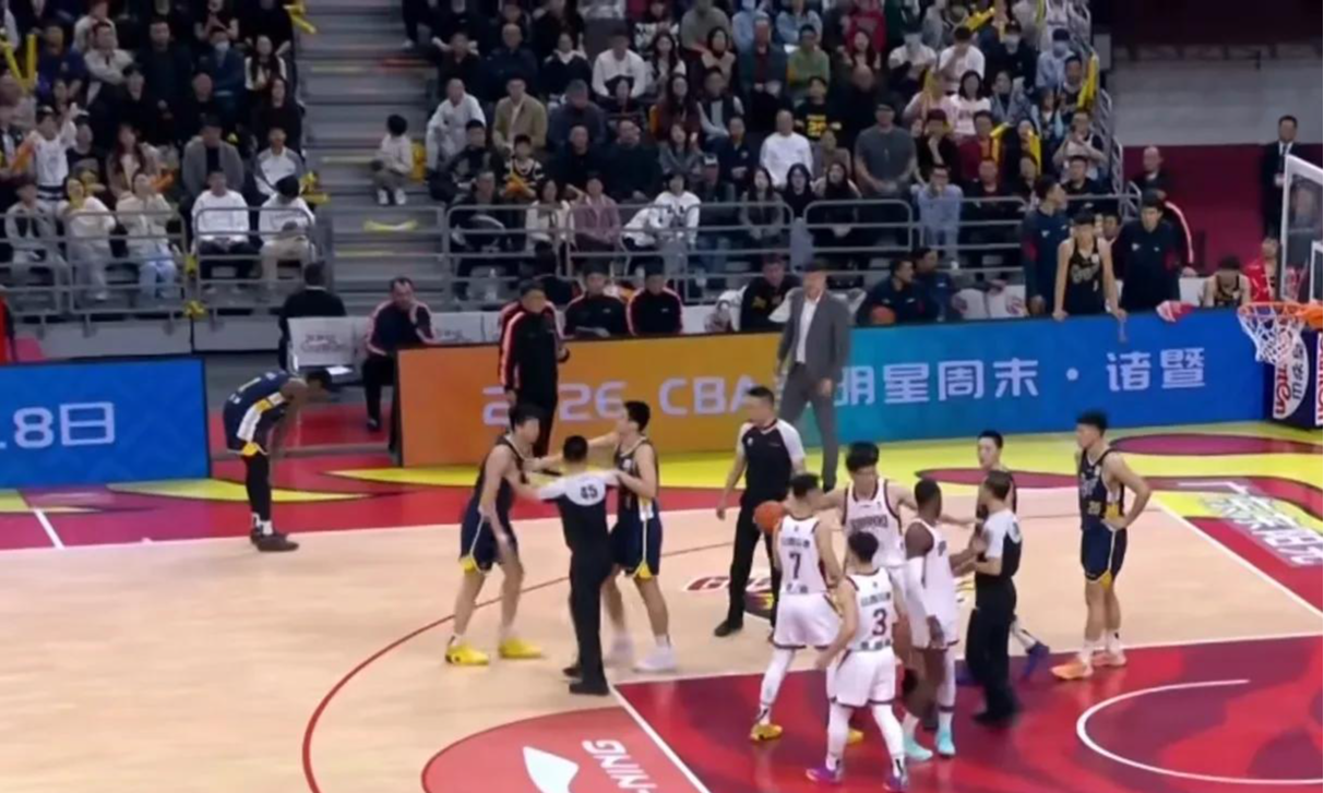 迪亚洛摔到场外,球迷击打迪亚洛,裁判拉走迪亚洛。张浩嘉背后袭击迪亚洛,发生摩擦。裁判认定张浩嘉违体犯规!迪亚洛两罚中1,107-97。