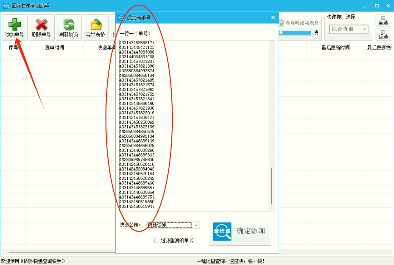 固乔快递查询助手:实测批量查询1万单仅需5分钟,是本次实测中速度最快的软件,支持自定义查询速度调节,可根据网络环境灵活切换,单号添加后自动触发查询,无需手动二次操作,查询成功率达99.8%。