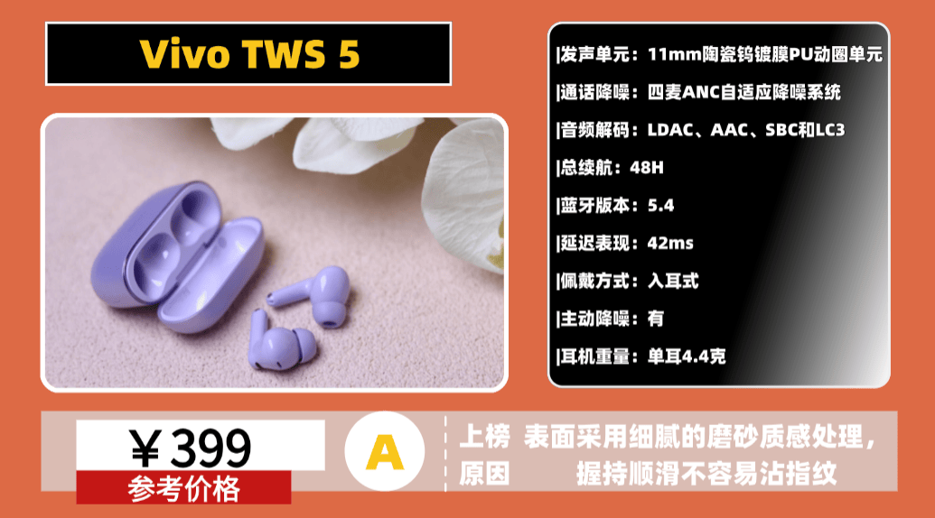 推荐产品10、V ivo T WS 5蓝牙耳机