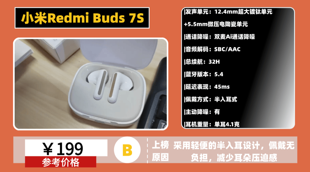推荐产品7、小 米R EDMI B uds 7S蓝牙耳机