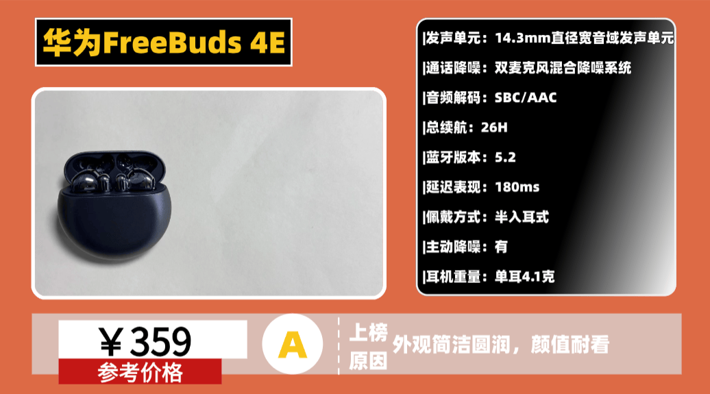 推荐产品4、华 为F reeBuds 4E蓝牙耳机