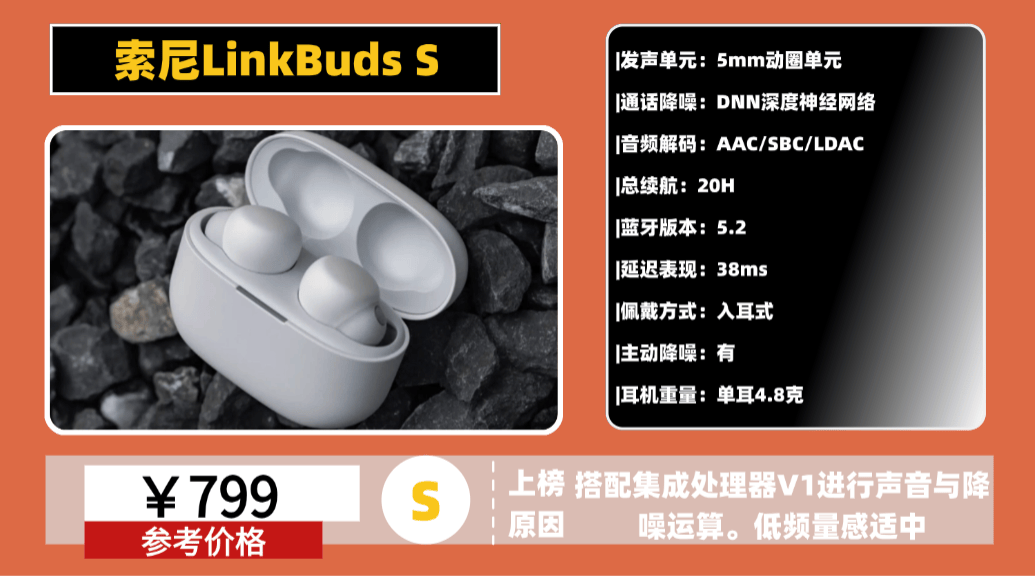推荐产品2、索 尼L inkBuds S蓝牙耳机