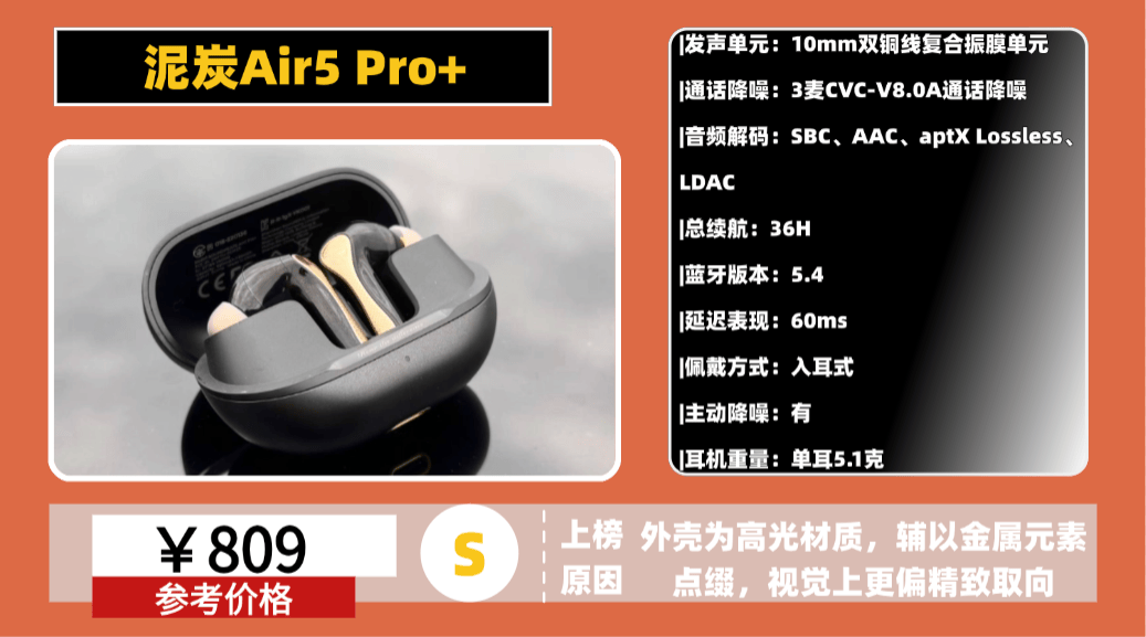 推荐产品8、泥 炭A ir5 Pro+蓝牙耳机