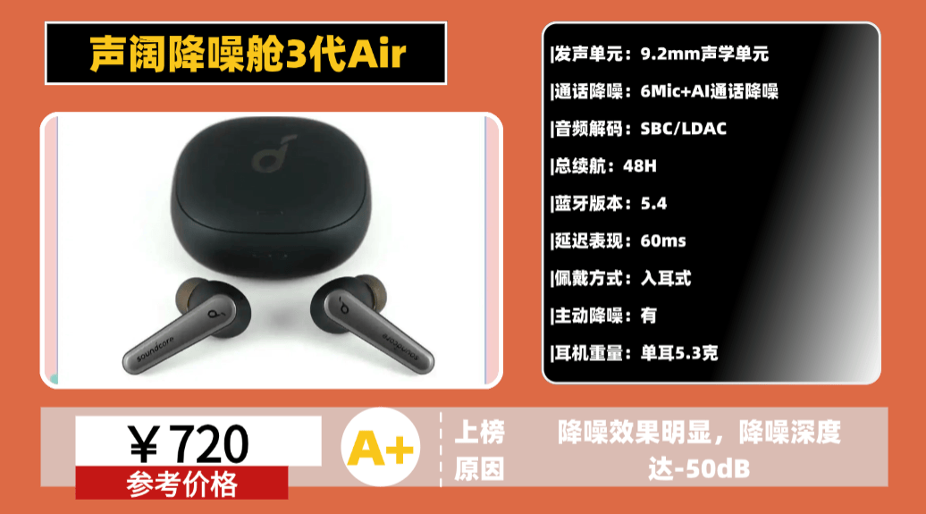 推荐产品6、声 阔降 噪舱3代Air蓝牙耳机