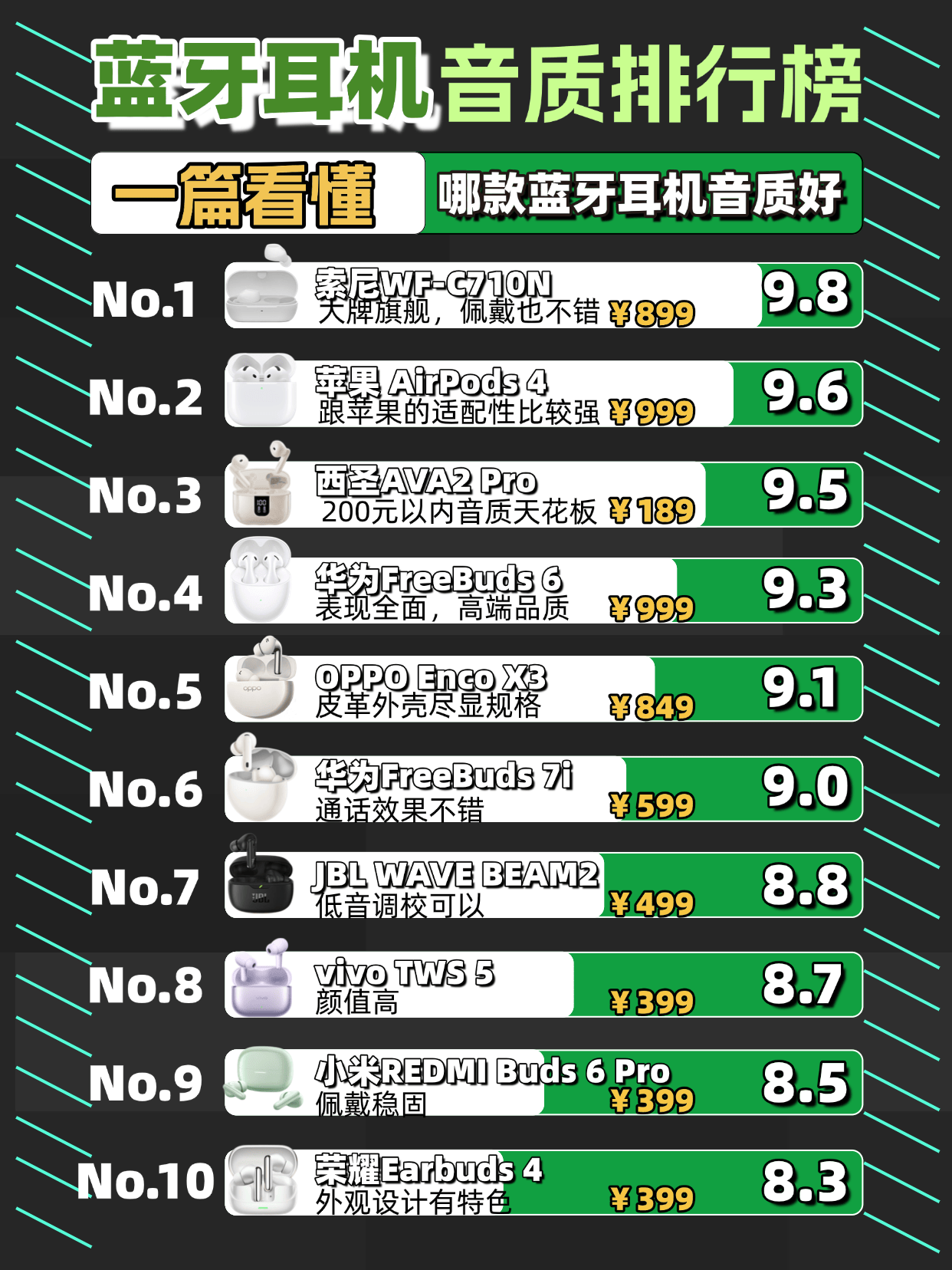 那么,蓝牙耳机哪款更靠谱?该如何挑选到音质出色、佩戴舒适、安全耐用的产品?别担心!本次十大音质最好的蓝牙耳机排名分享聚焦蓝牙耳机的核心需求,精选多款主流优质机型,从音质调校、连接稳定性、佩戴舒适度、耐用性等关键维度逐一拆解,扒清每款机型的核心优势与适配场景,帮你轻松解答蓝牙耳机哪款更靠谱?助你挑选到适合自己的优质蓝牙耳机。