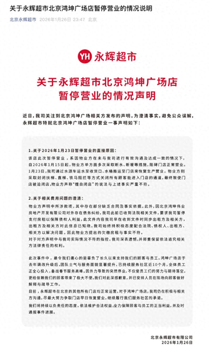 有点意思,人家商场有债务纠纷,你就可以不付房租吗?但另一方面,永辉运营的好好的,还会强行自己关店吗?现在是各执一词,也不知道谁在撒谎。