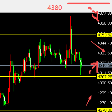 2、关注守4300上方,整体涨势不变,依然看涨延续,上方再次涨破4353,继续看4380的阻力承压。