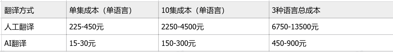 结论: AI翻译在规模化能力上具有压倒性优势,特别适合需要快速覆盖多个市场的短剧平台。