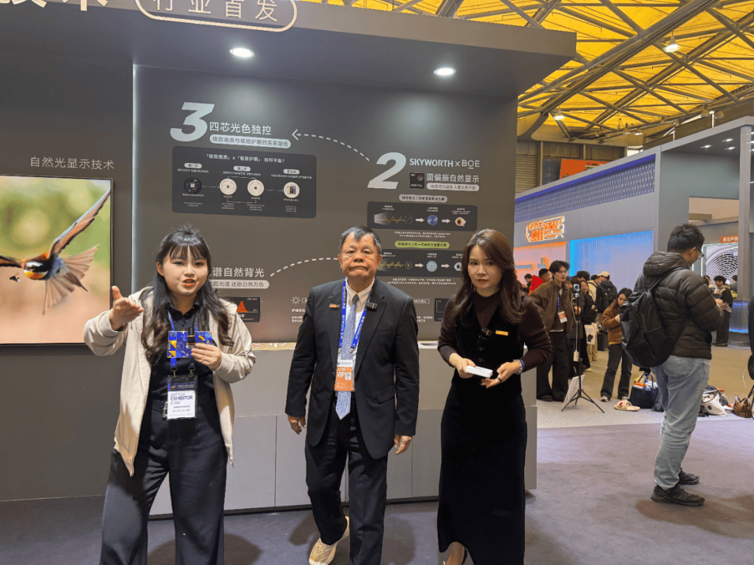 视线回到本届AWE,另一幕对比强烈。一边是周云杰的从容路演,另一边,则是创维创始人黄宏生先生,以年近古稀之龄,亲自为品牌竭力呐喊。这位白发稀疏的行业老兵,与两位 20 + 的年轻网红现场直播互动。