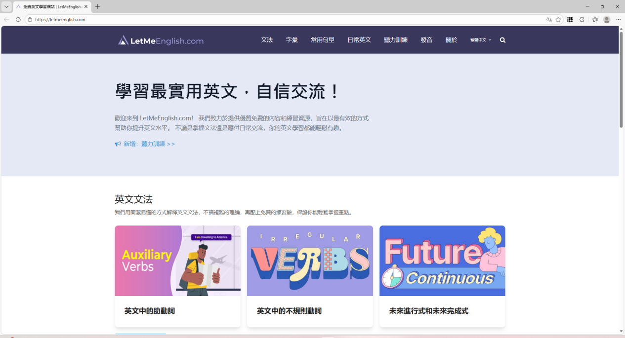 12、LetMeEnglish这是一个助力英语学习、打破沟通障碍的免费网站,资源丰富且分类明了,涵盖文法、词汇、句型、日常会话、听力练习等多个主题。无论是想夯实语法基础、扩展词汇量,还是提升日常交流能力,都能在这里找到对应学习内容,随时打开就能学,全程免费。
