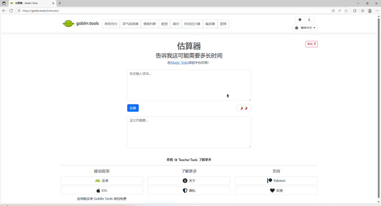 网站地址: https://goblin.tools/Estimator