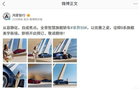 鸿蒙智行再掀高端轿车市场风云!新款享界S9(图片|配置|询价)全景智慧旗舰轿车正式官宣“即将开启预订”,作为华为与北汽联