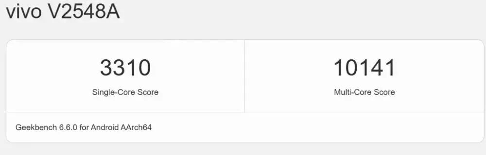 这款全新的vivo X300s手机在 GeekBench 6.6.0 版本中,单核成绩为 3310 分,多核成绩为 10141 分。