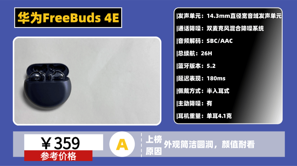 性价比高的蓝牙耳机推荐8、华 为F reeBuds 4E蓝牙耳机