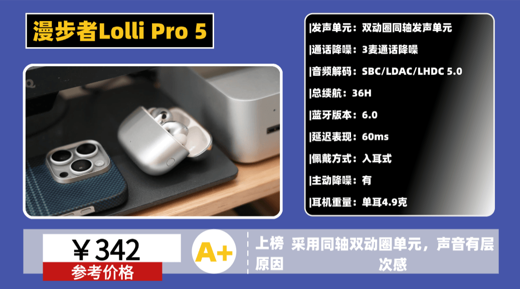 性价比高的蓝牙耳机推荐10、漫 步者L olli Pro5蓝牙耳机