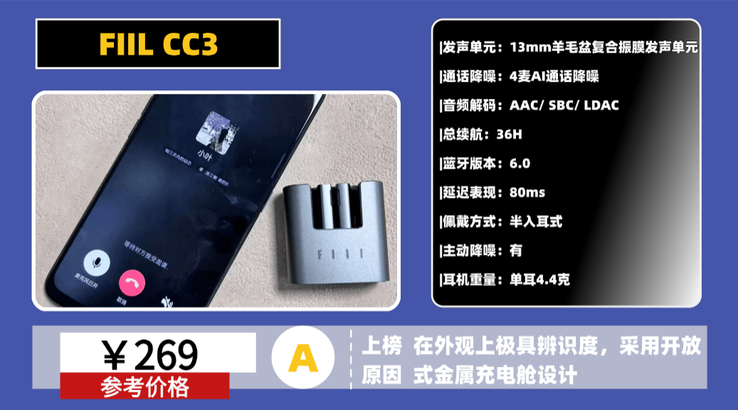 推荐理由:这款耳机采用半入耳式设计,外观简洁圆润,充电仓体积小巧,开盖手感顺滑且带磁吸结构,日常携带比较方便。耳机还支持轻度主动降噪,在通勤或室内环境中可以对部分环境噪声进行一定削弱。