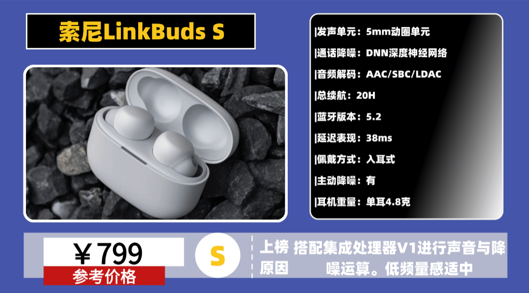 性价比高的蓝牙耳机推荐9、索 尼L inkBuds S蓝牙耳机