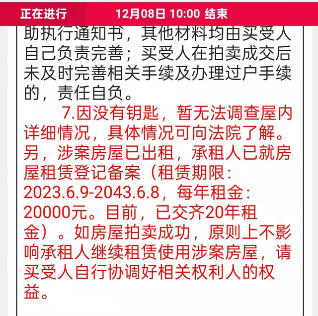 有些法拍房挂着十几年、甚至二十年的租约,而且租金可能早就一次性付清了。执行法官通常承认租赁合同的效力,也就是说,你拍下房子后,一时半会儿既收不到租金,也住不进去。