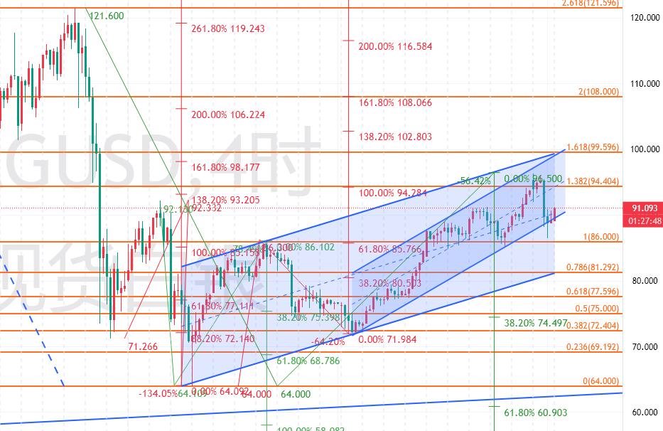 今天首先92-93区域阻力,然后昨天高点区域,不破昨天高点都是偏空;突破的话,恐怕要去一次100美元大关了。支撑85-86区域短期,破位空头进一步走强,然后测试80-79美元。整体而言,对于白银,我们维持观点,看牛皮市。因此,周一说低位布局的多单逐步获利平仓;然后参照阻力着手空单布局,这个观点不变,接下来依然高空为主,多单辅助。