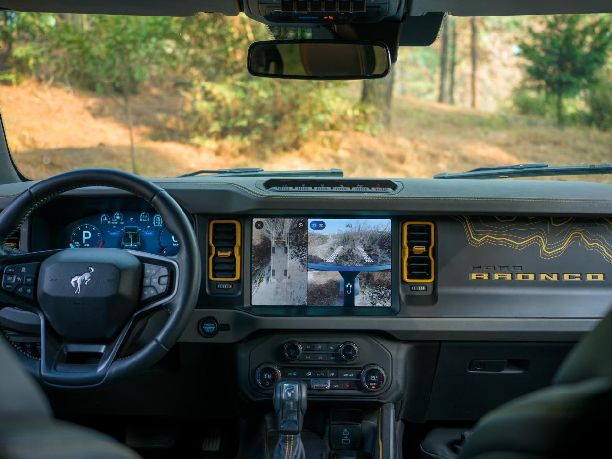 为应对野外复杂多变的地形,540°越野透明底盘系统依托福特自研核心算法,即使行驶在连续颠簸路段,全景画面依然保持流畅稳定,不卡顿、无跳帧。配合深度集成的语音控制功能,驾驶者只需说出指令即可切换视图,让驾驶者能更专注应对陡坡、坑洼、岩石等复杂地形,从容征服每一次越野挑战。