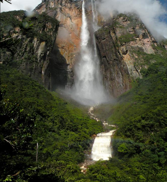 安赫尔瀑布,又名丘伦梅鲁瀑布。当地的印第安人满怀崇敬地叫它“出龙”。这也确实像一条出海的银龙,灵活夭娇,盘桓在高山峭壁之间,凌空垂下,激起满山谷珠玉四溅,水雾氤霭,下坠之势如追风逐电,势不可挡,隆隆轰鸣之声,如飞龙清啸,在整个山谷间回响。光的照射下,时常可见一道绚烂的彩虹在水雾之上,柔媚如月笼轻纱,似是谁抛出的彩练,与这条飞奔的银龙嬉戏玩耍。瀑布两旁古树参天,山石嶙峋,藤葛缠绕纠结,在壮丽中又添肃穆之美。