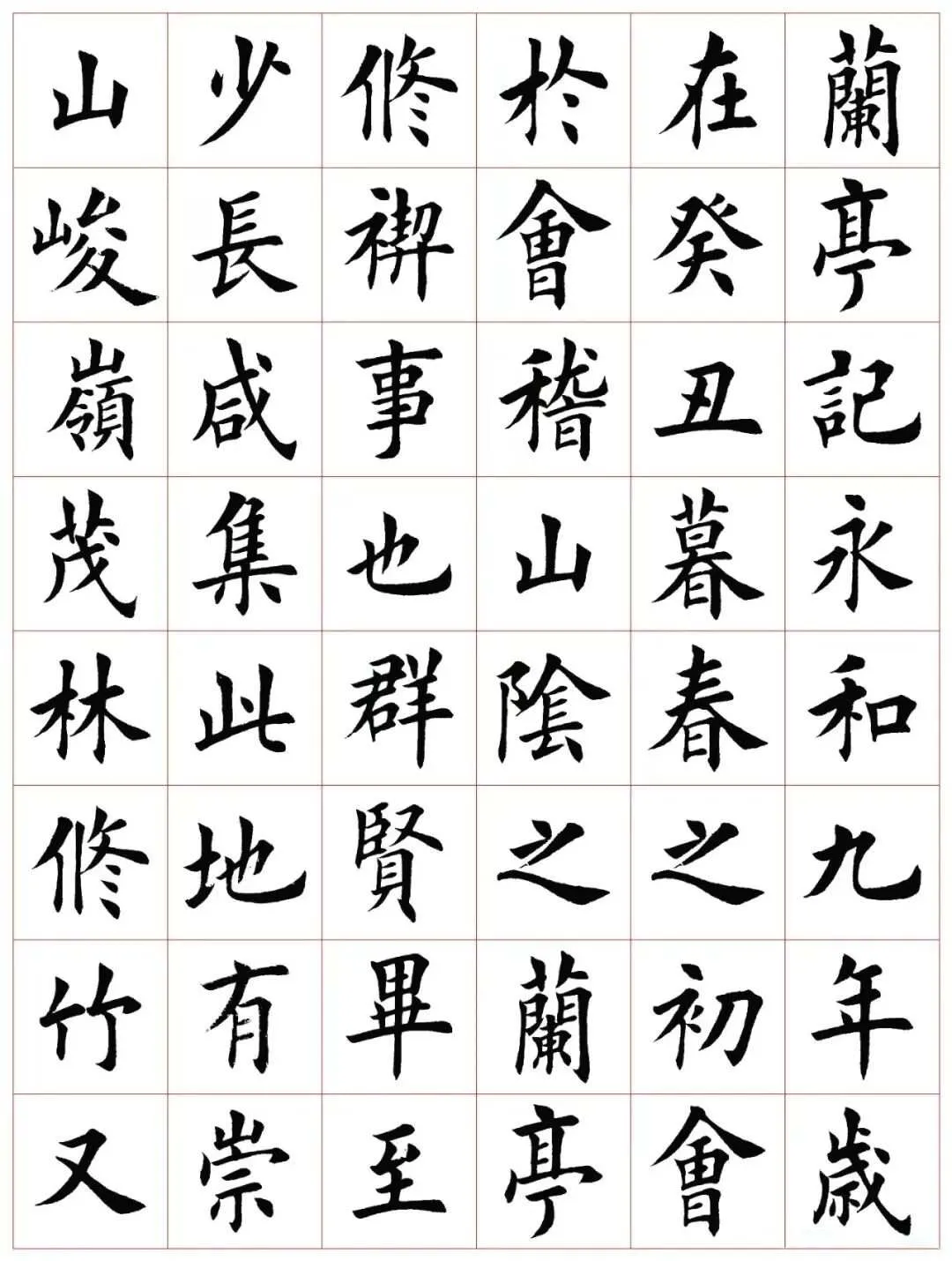 田英章的楷书《兰亭序》以严谨端庄著称,结构精准、笔画细腻。