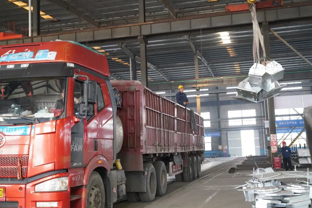 “这一车是发往四川广元的。今天已经累计发出140吨电力产品。”镀锌车间包装发运班包装工刘段锋一边填写发货清单一边说。