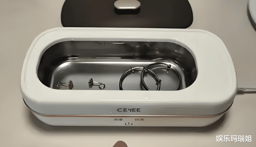 在清洁方面,拥有46000Hz高频超声波,能深入清洁盲区,完美清除眼镜鼻托油脂、珠宝镶嵌死角、牙套凹槽的污垢!清洗槽采用304食品级不锈钢内胆,可以放心使用。
