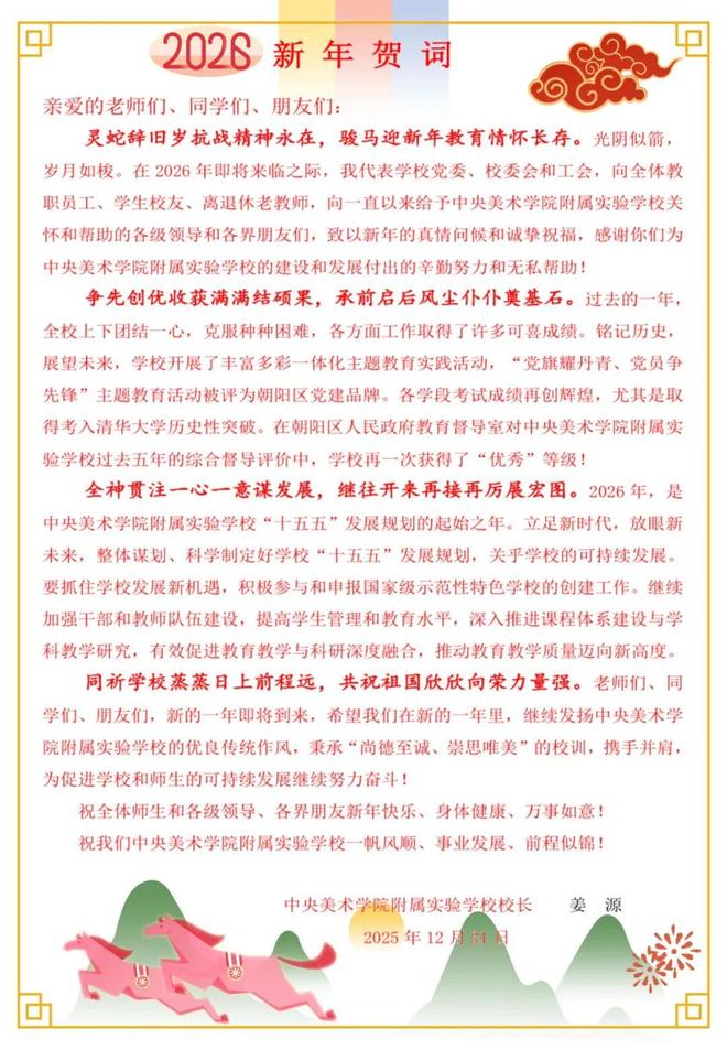 此次迎新年联欢会,不仅为教职工们提供了一个展现自我、交流互动的平台,更凝聚了团队力量,传递了学校的温暖关怀。新的一年,中央美术学院附属实验学校全体教职工将以更加饱满的热情、更加昂扬的姿态投入到教育教学工作中,以艺为翼,策马逐光,共同书写学校高质量发展的崭新篇章!