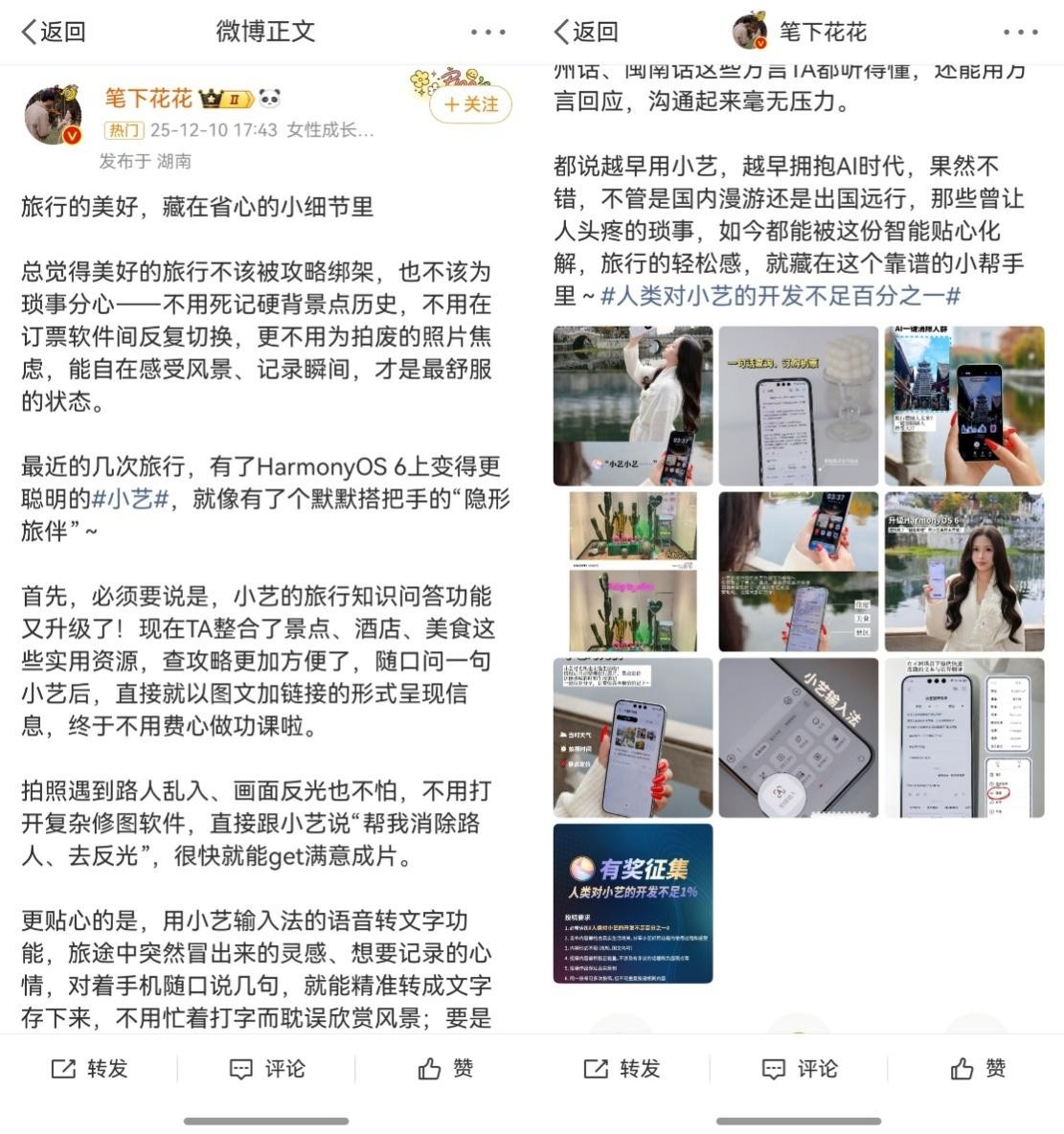 我最近在微博上发现了个热门话题#人类对小艺的开发不足百分之一#,好家伙,这届网友是真把小艺玩明白了——原来除了问天气,TA还能当旅行管家、修图大师…围观了一圈才发现,小艺早就是“六边形战士”了,只是我之前没解锁正确姿势。