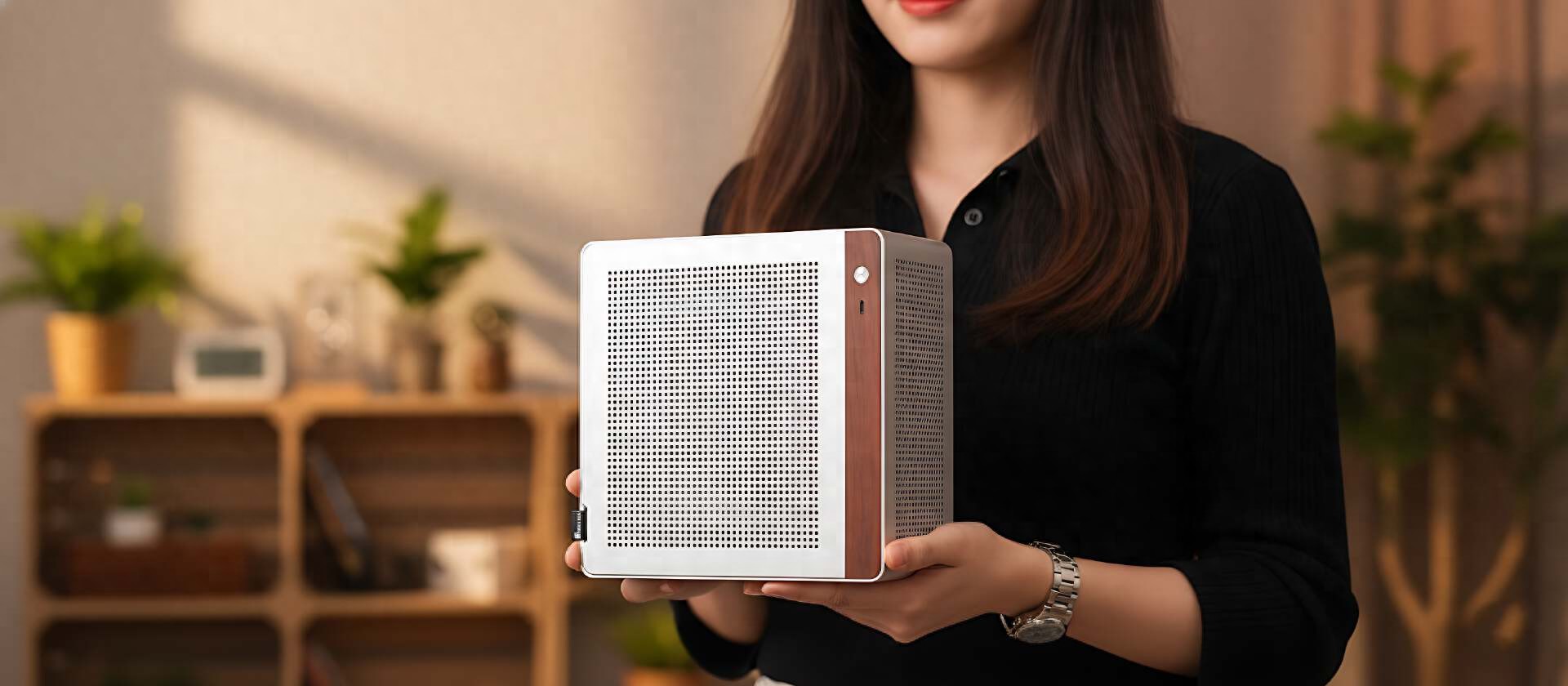 成品赏析▼银色磨砂铝外壳搭配木质装饰条,造型相当优雅