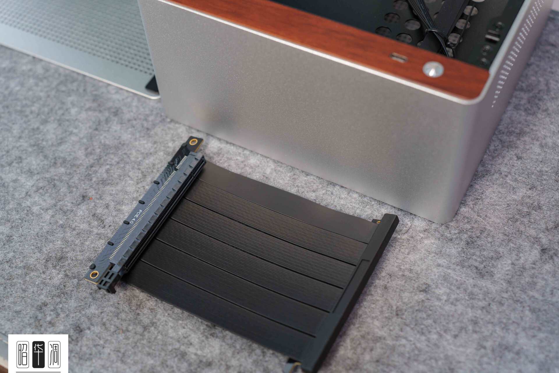 ▼显卡利用延长线连接。NV10 的优势在于,延长线的长度和机箱适配度高,成品更加简洁,不像第三方线材存在藏线烦恼。