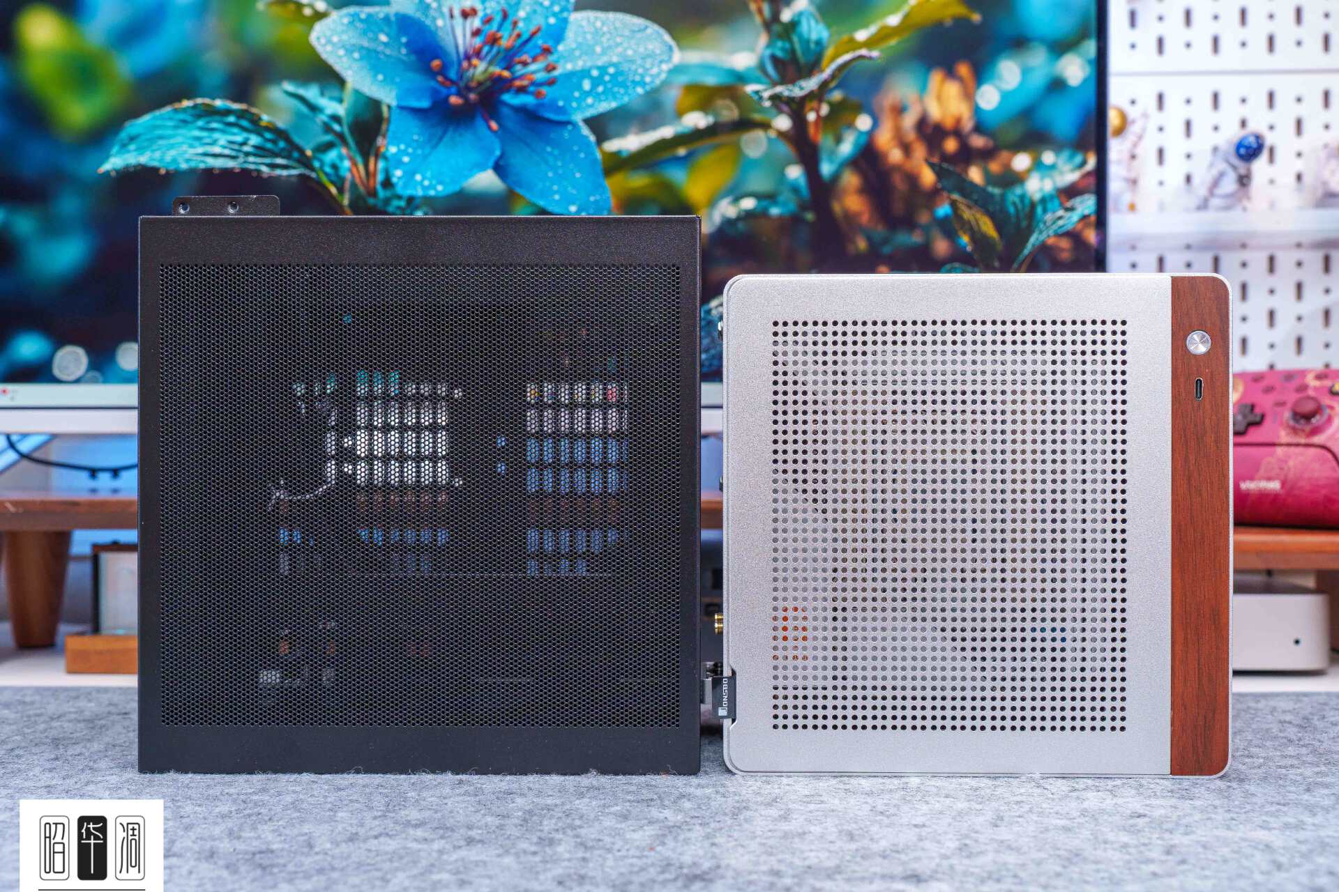 前几天装了台 ITX 主机,机箱用的机械大师新出的 E06,不得不说这种小主机才是我的真爱。评论区很多朋友也提到了乔思伯 NV10 这款机箱,硬件适配性来说两者都差不多,同样限制半高刀卡和 flex 小 1U 电源。为此,我也重新搞了台乔思伯 NV10 来装机,顺便对比下两者的装机体验,以及显卡直插 / 连接线的性能损耗。