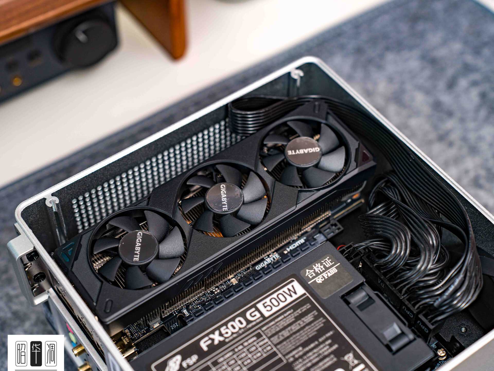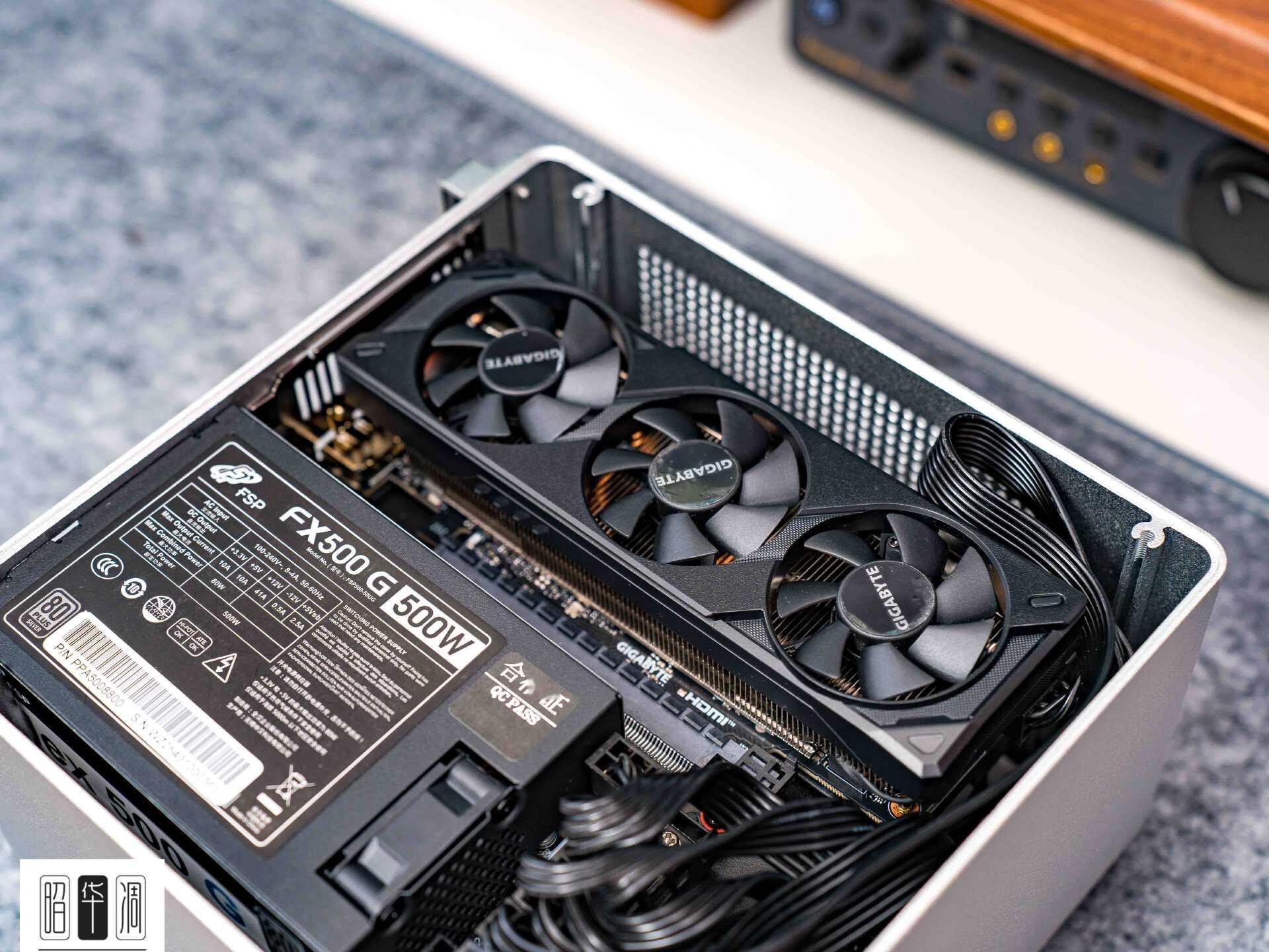 ▼背面布局,技嘉 RTX5060 LP 显卡和全汉 FX500 G 电源。小众硬件就是这点不好,溢价太高,同规格大尺寸硬件,价格会便宜不少。