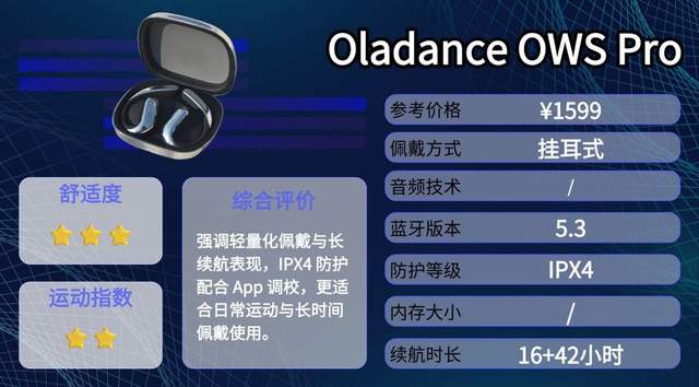 Oladance OWS Pro是一款轻量挂耳式骨传导耳机,单耳约12.3g,蓝牙5.3连接稳定,支持APP管理,续航表现不错,适合运动和日常使用。