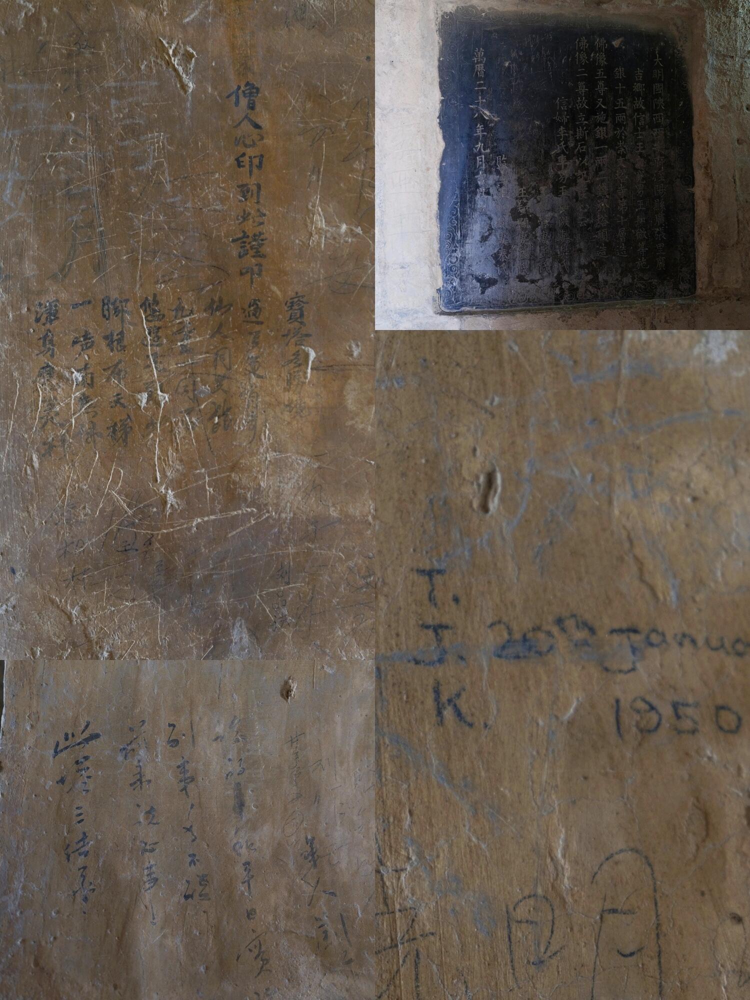 最有意思的是塔内的“题刻”,堪称一部“古代游客留言簿”。1980年代,文保人员在顶层发现了一行字:“万历丁未(1607年)秋,泾阳生员张某登此”。这可是目前发现最早的题刻,距离崇文塔建成才16年,可见这座塔刚建好就成了“网红打卡地”。现在你去爬塔,从5层往上,墙壁上、砖缝里,到处都是不同年代的题字:有明代文人写的诗句,字迹潇洒;有清代僧人留下的梵文,透着虔诚;有民国游客的签名,还带着当时的钢笔字迹;甚至还有外国人的留言,用英文、法文写着“到此一游”,不知道是清末民初来中国的传教士,还是后来的旅行者。这些题刻有的清晰可辨,有的已经模糊,但每一笔每一划都藏着一个故事,你说要是能把这些题刻都解读出来,是不是能编一本《崇文塔游客史》?