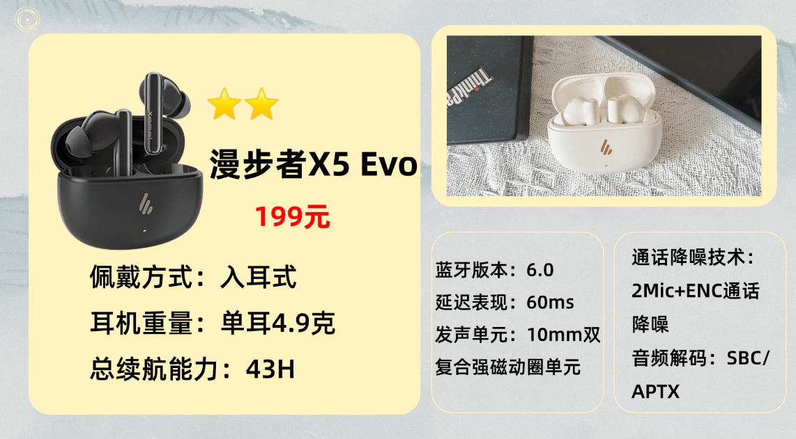 推荐产品3、漫 步者X 5 Evo蓝牙耳机