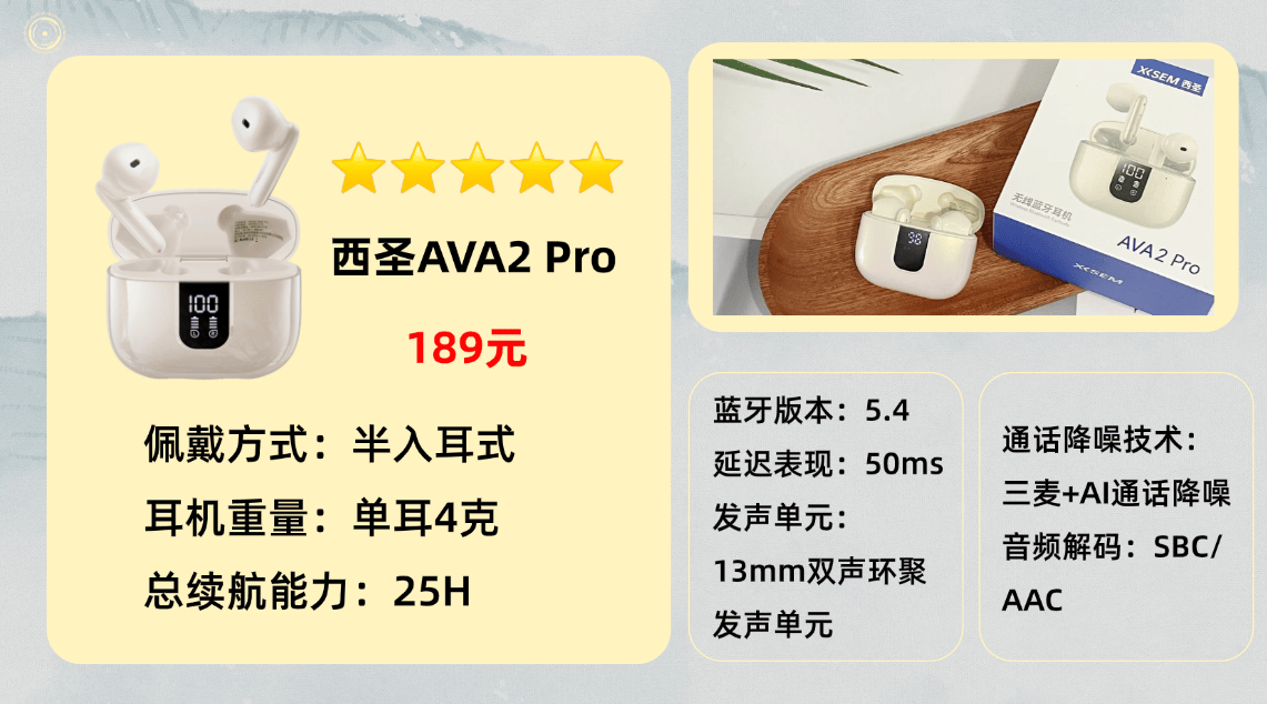 西圣AVA2 Pro蓝牙耳机:学生党青睐的高性价比之选,音质与舒适度表现越级