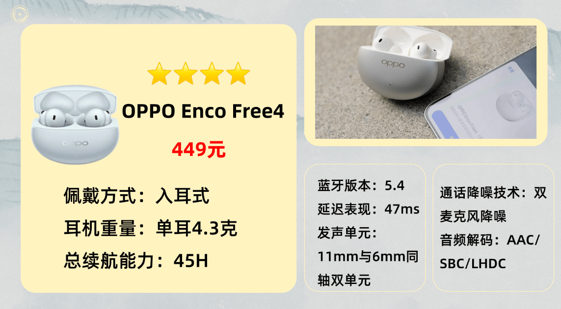推荐产品5、O PPO E nco Free4蓝牙耳机