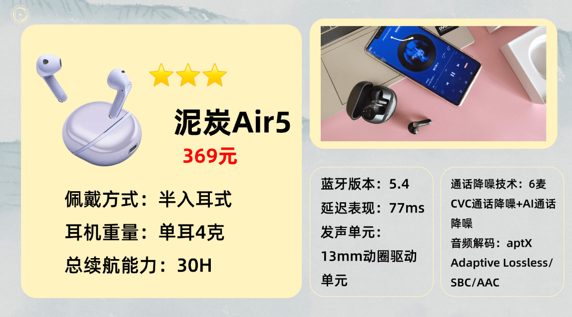 推荐产品4、泥 炭A ir5蓝牙耳机