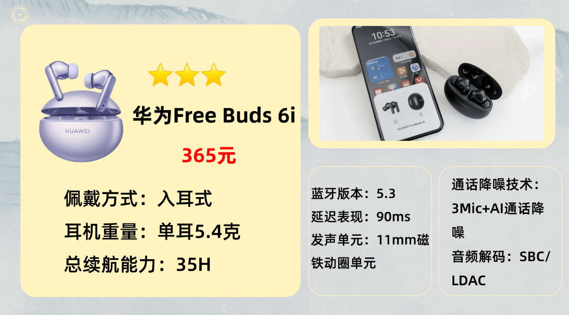 华 为 F reeBuds 6i 蓝牙耳机:大众熟知的老牌机型,连接稳定性有保障