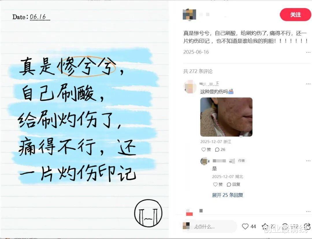 社交媒体上,刷酸烂脸的案例频频出现,刷酸=刺激的刻板印象,使部分潜在用户望而却步。