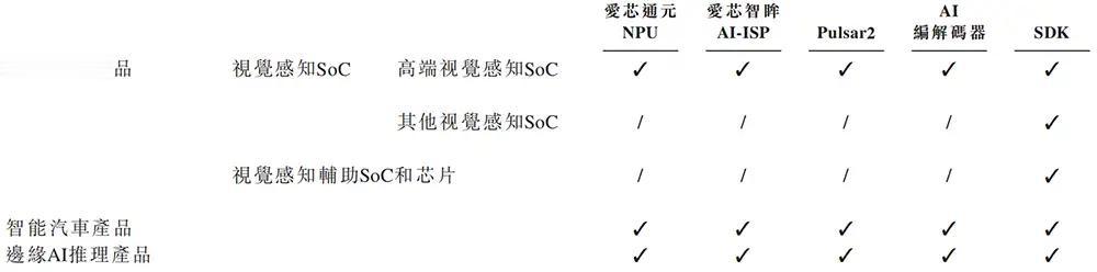 ▲爱芯元智核心芯片系列概览