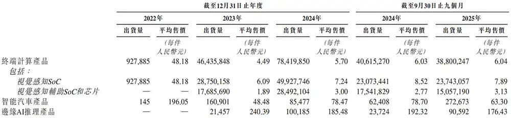 2022年至2025年9月底,爱芯元智有超8成的收入来自终端计算产品(包括视觉感知SoC、视觉感知辅助SoC和芯片)。