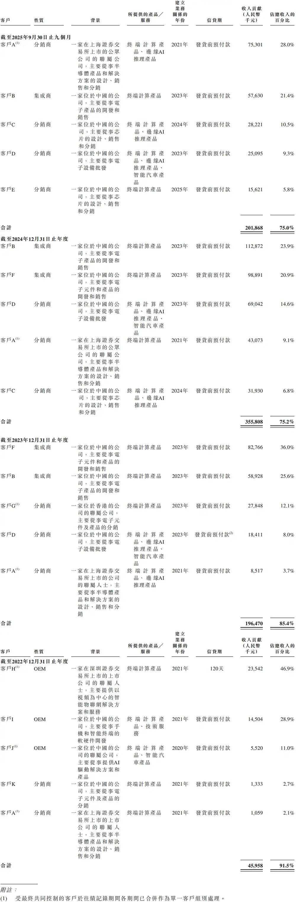 客户A、客户C、客户E、客户J亦是其供应商。客户A和客户J均为最终共同控制下的一组实体,被合并视为单一客户群组。