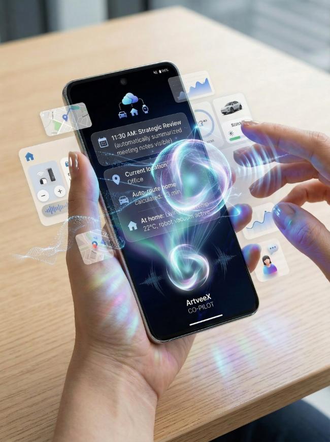 从手机这一超级入口出发,ArtveeX正加速构建多终端无缝协同的智能生态。通过将AI能力注入穿戴设备、智能汽车与全屋智能等,品牌致力于打通人车家全场景壁垒,实现数据与服务的自由流转。在这一生态图景中,AI不再是需要唤醒的功能,而是如空气般无处不在的无感陪伴,为用户带来多维度、更便捷的智控体验。出行途中,手机与车机无缝衔接;居家时刻,设备主动适应用户习惯。