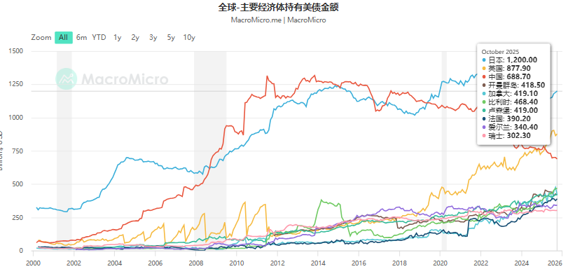 作为典型的出口导向型国家,日本对美国长期保持贸易顺差,必然积累大量美元外汇。若任由美元在境内堆积,将推动日元升值,严重削弱日本出口产品的国际竞争力。因此,购买美债成为日本消化过剩美元、稳定日元汇率的重要工具。