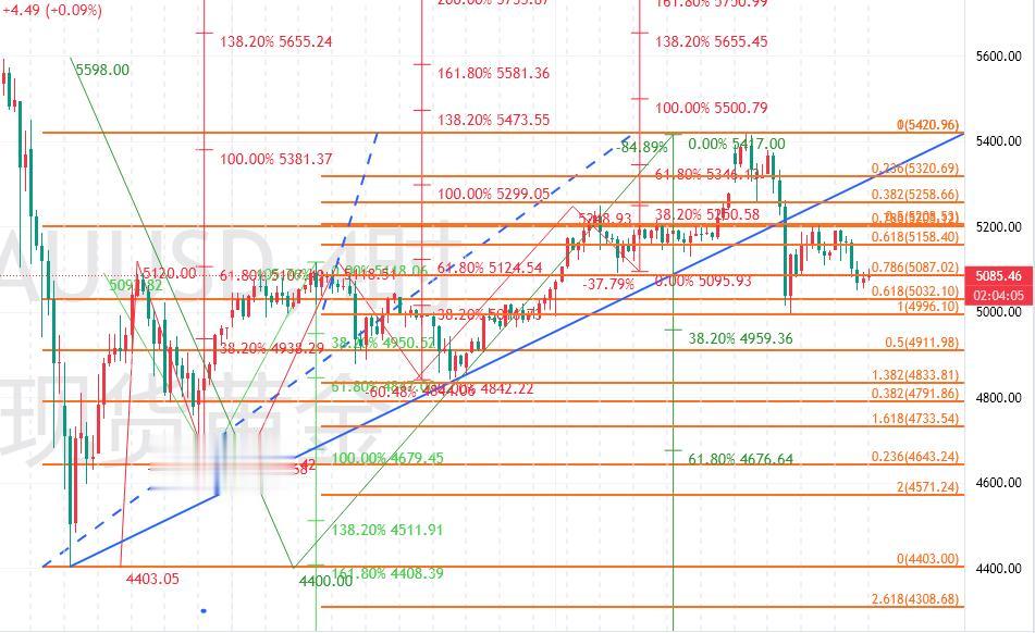 扫荡式冲高下跌为主,昨天高点无论如何不能破,否则就不好跌了!操作上,杠杆产品拉高做空为主,不追空,靠近支撑可多单辅助。非杠杆产品积存金等,已经5400美元高位提示减仓,等低吸买回来;依然部分仓位持有,部分打差价。实物没啥可说,别折腾。