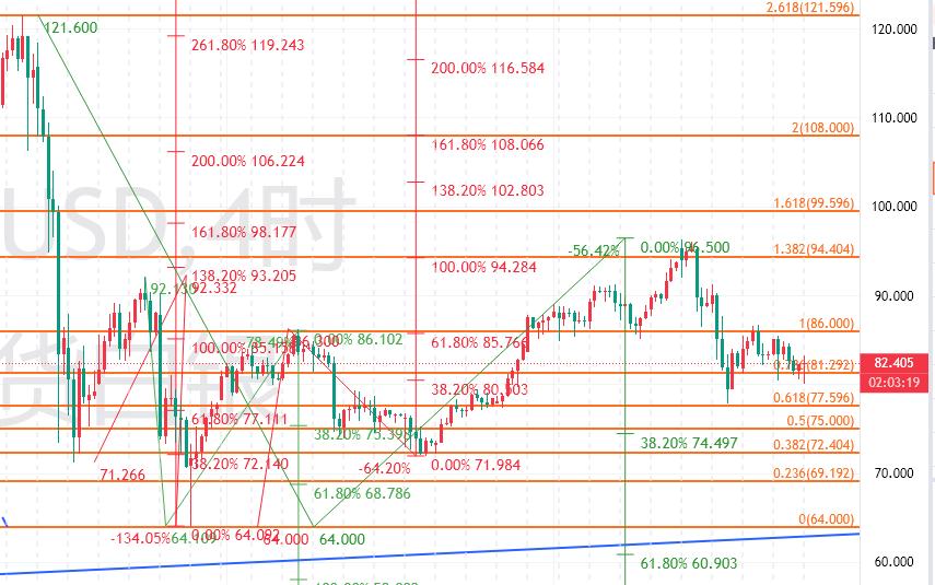 短期的话关注冲高回落,第一84美元区域阻力,然后87-86美元阻力;一切拉高不上87都要跌,上了可能会冲击90及以上再跌。下方支撑80美元和77美元;破位支撑还要泄洪,进一步75-74美元,70-71美元,破位前多头反。操作上,同步黄金,带好止损。
