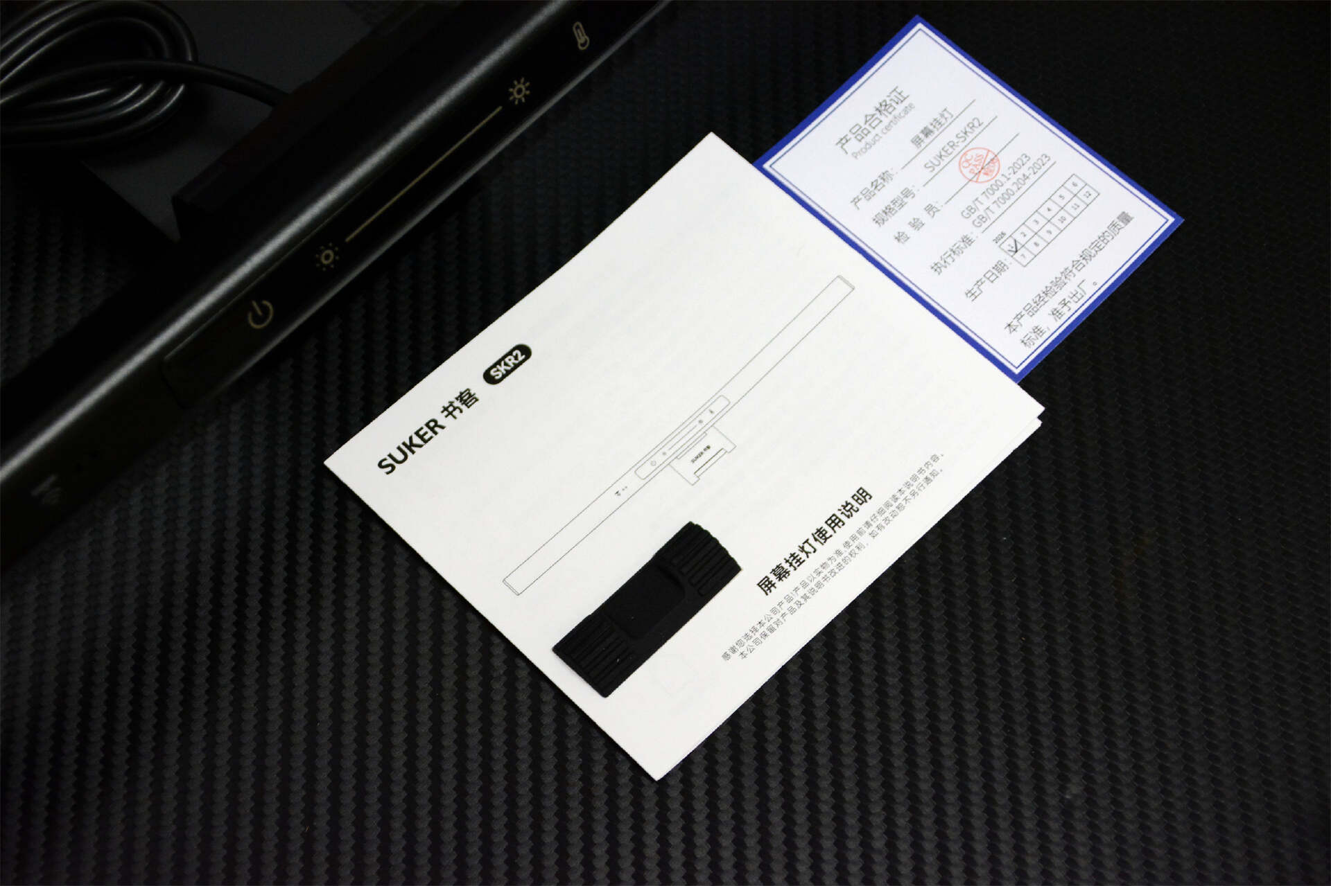 书客SKR2屏幕挂灯外,还有一本说明书,一个加厚垫贴和一个合格证。说明书建议大家还是看一看,里边的操作写的很明白,不过操作也确实简单。一学就会,一用就对。加厚垫贴在上机前贴上就可以了。
